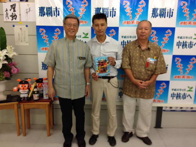 那覇市長の翁長雄志氏とお会いしました!栄町市場は市長の父上、旧真和志村長だった翁長助静氏が作り、お母様は市場内で蒲鉾屋さんをされていました。市場で過ごした少年時代の思い出や、市長が掲げる「協働の街づくり」について熱くお話いただきました!